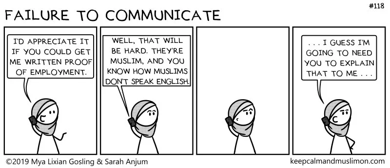 A stick-figure Muslim American comic by Mya Lixian Gosling and Andrea Annaba
